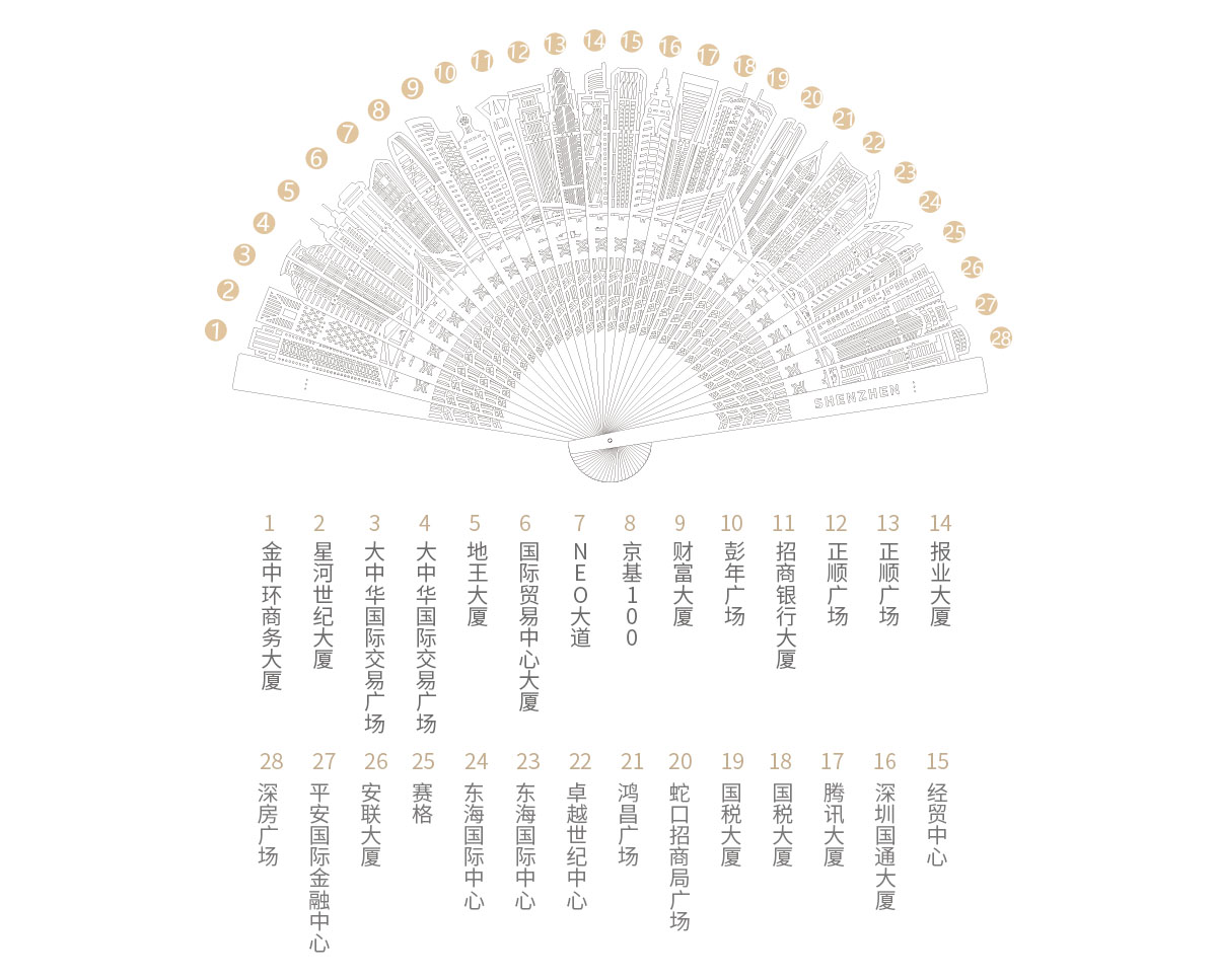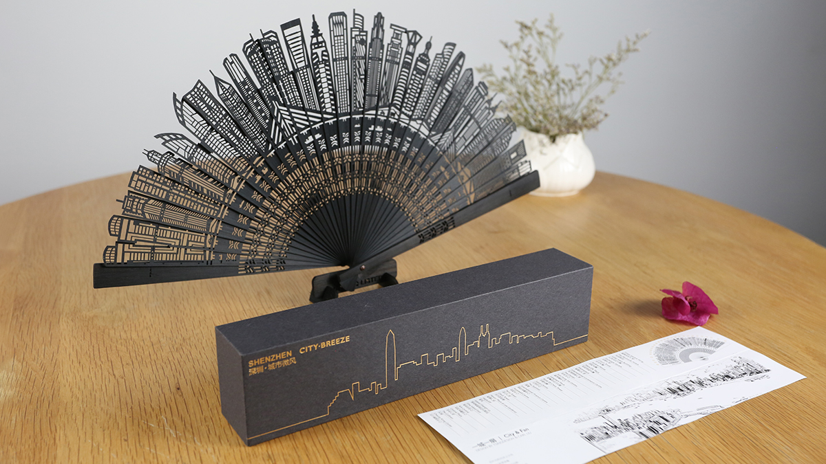 深圳城市微风竹扇,设计灵感来源于深圳湾公路大桥。一座座摩天建筑的剪影下,是一条连接大陆与香港的深圳湾公路大桥,桥上高速行驶的车辆,和桥下满载的货轮,代表着深圳作为中国改革开放的窗口,从小渔村发展为有影响力的国际化城市,举世瞩目的“深圳速度”。深圳城市微风竹扇把深圳地标建筑、城市文化浓缩于一把竹扇之上,展现出深圳的独特魅力。
